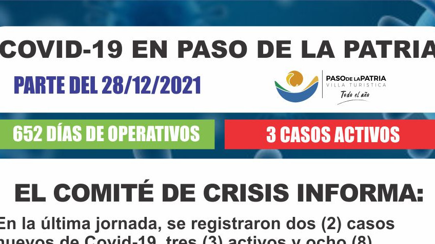 En las últimas 24 horas se han registrado dos (2) casos nuevos de Covid-19, tres (3) casos activos y ocho (8) personas están aisladas preventivamente en Paso de la Patria.