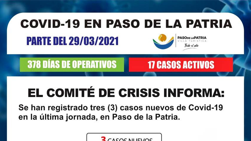 En la última jornada se han registrado tres (3) casos nuevos de Covid-19 en Paso de la Patria.