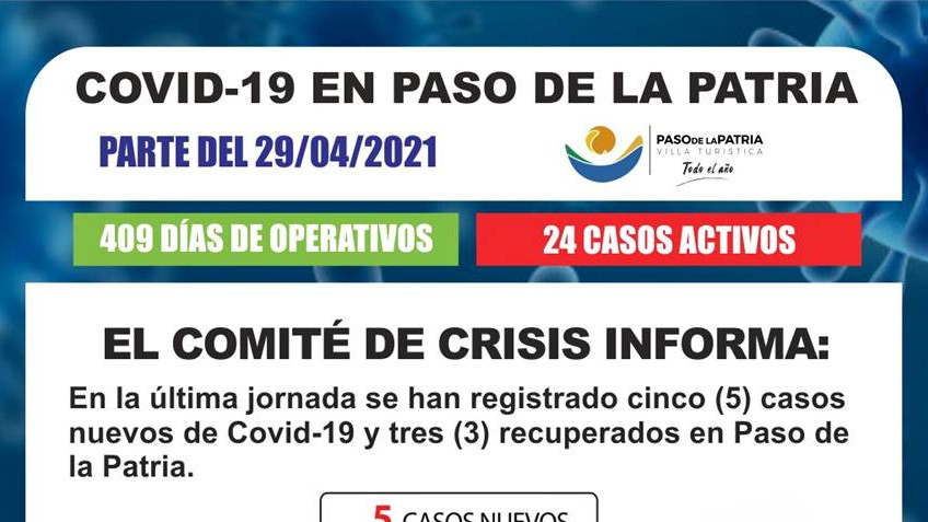 En la última jornada se han registrado cinco (5) casos nuevos de Covid-19 y tres (3) recuperados en Paso de la Patria.