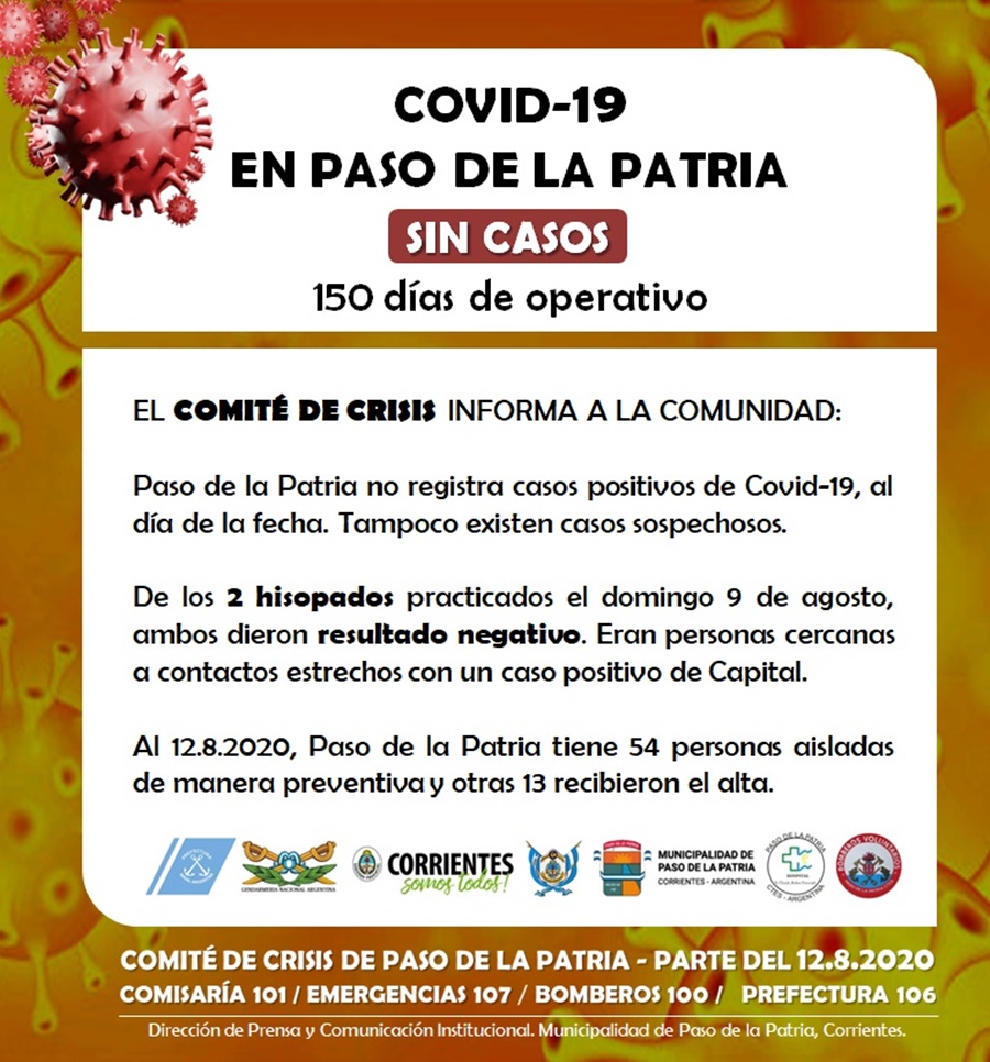 Parte Oficial del Comité de Crisis Covid-19 de Paso de la Patria.