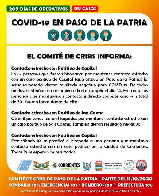 Parte Oficial Comité de Crisis de Paso de la Patria