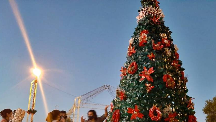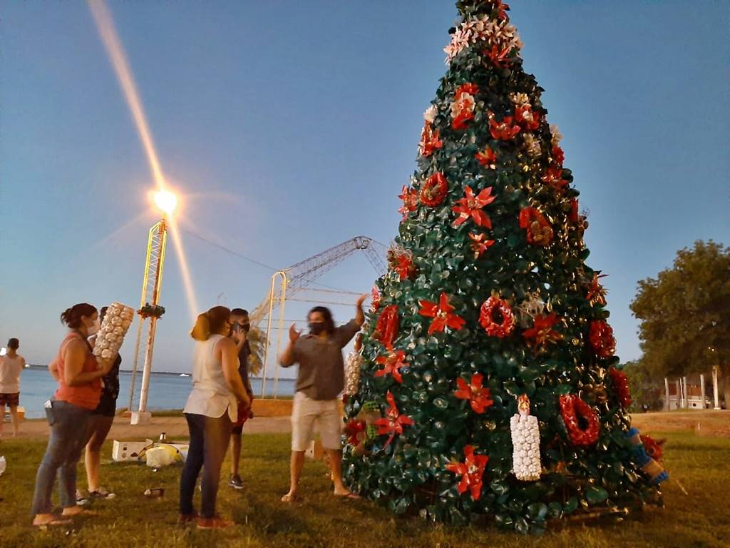 En el predio del Anfiteatro Pinín Palma ya tenemos un gran Árbol de Navidad realizado con materiales reciclados.