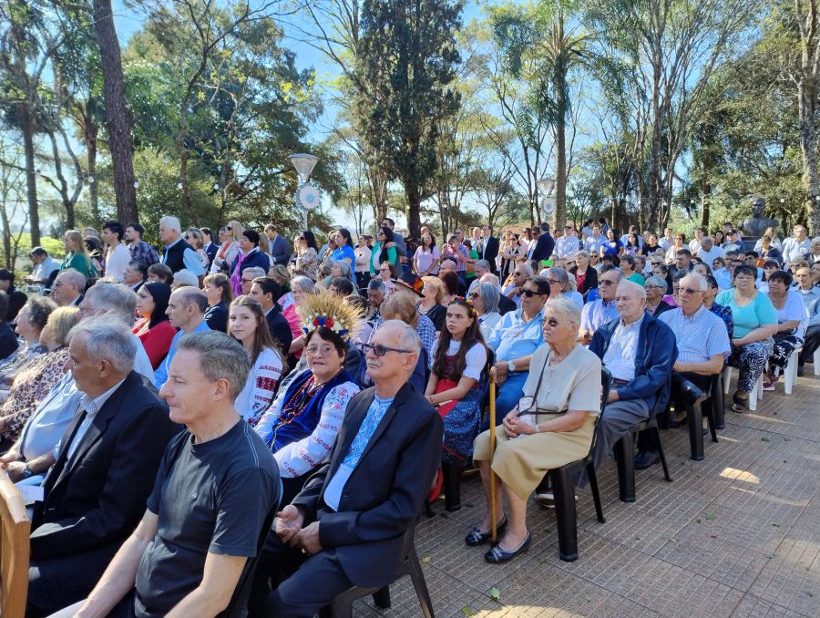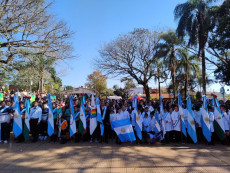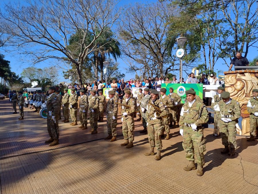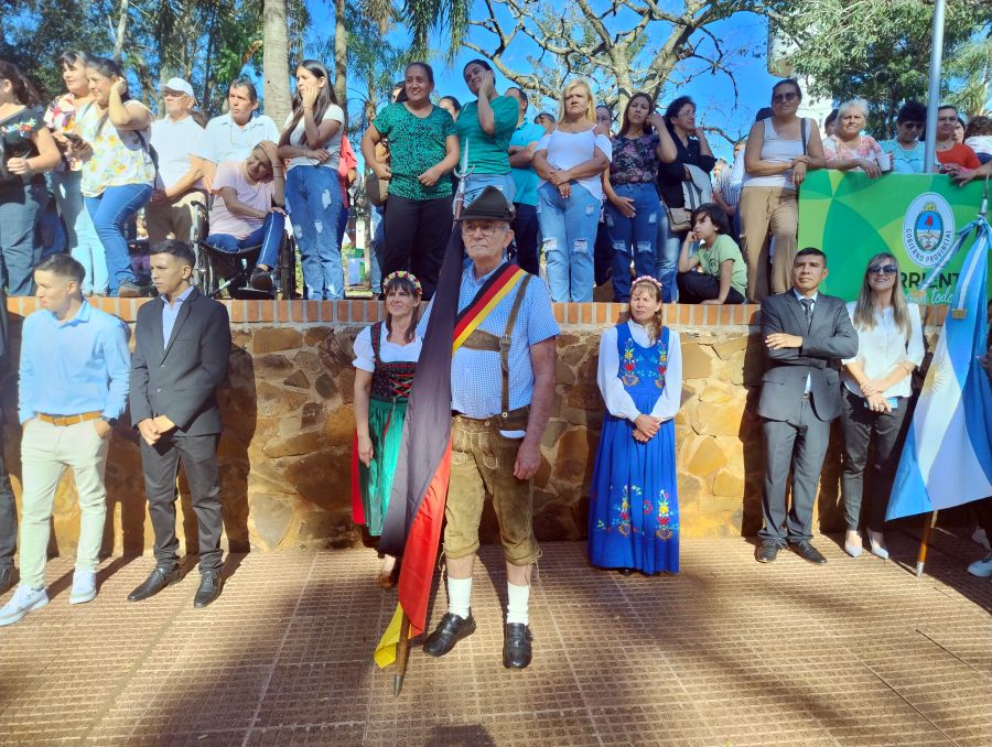 Posteriormente, se entonaron las estrofas del Himno Nacional Argentino, interpretadas por la Banda de Música del Regimiento Monte 30 de Apóstoles, Misiones. Además, se escuchó la versión en guaraní del himno nacional, cantada por Nélida Argentina Zenón, quien deleitó a los presentes con la canción oficial de Colonia Liebig, evocando los 100 años de rica historia de la localidad.