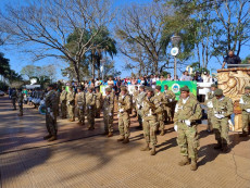 En la ceremonia, el capitán Guido Valdés del Regimiento de Infantería de Monte 30 presentó una formación especial de Colonia Liebig al gobernador Valdés, quien ofreció su saludo a la misma, al igual que la intendente Kowacz.