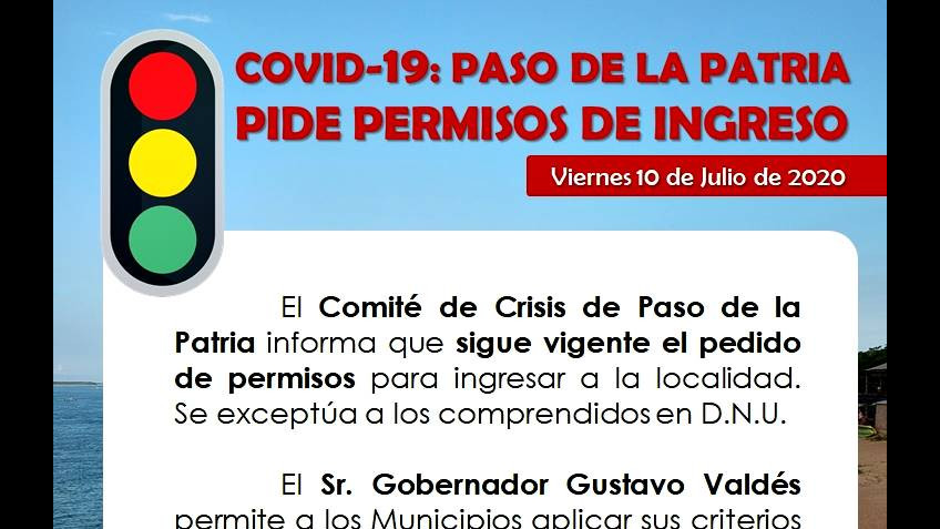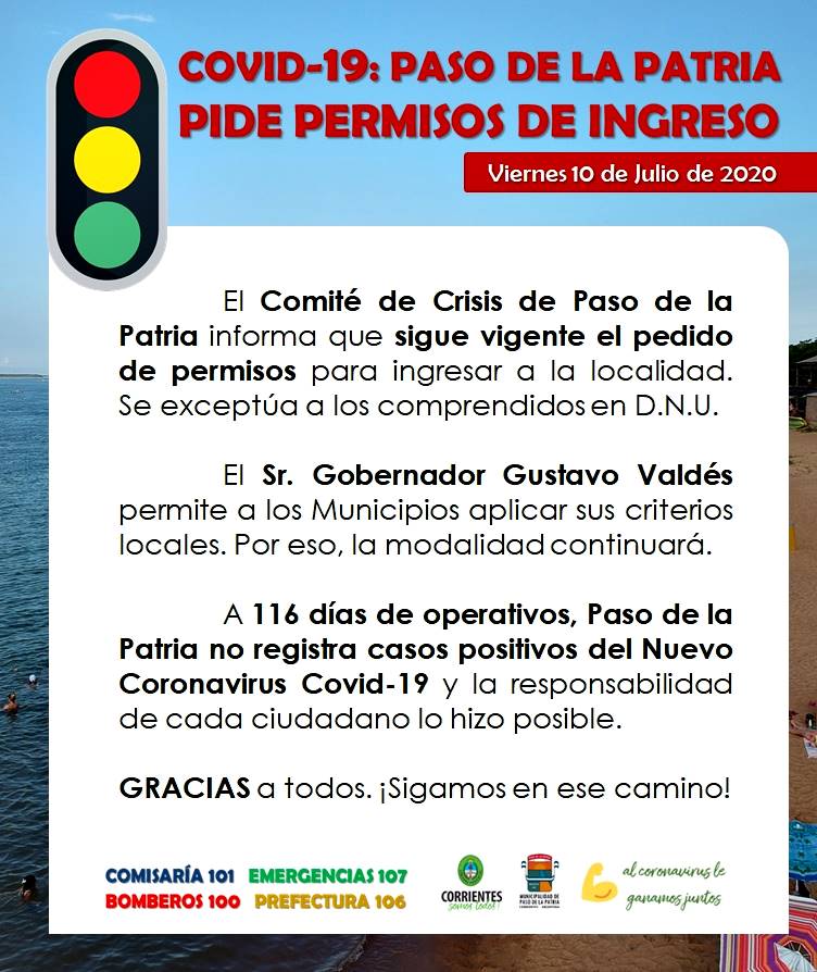 Permisos de ingreso a Paso de la Patria por Covid-19