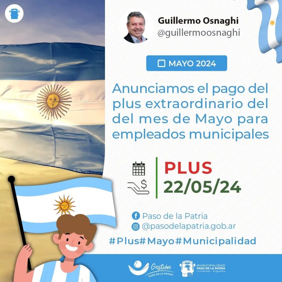 La Municipalidad de Paso de la Patria, bajo directivas del intendente Guillermo Osnaghi, anuncia un incentivo extraordinario para su personal municipal.