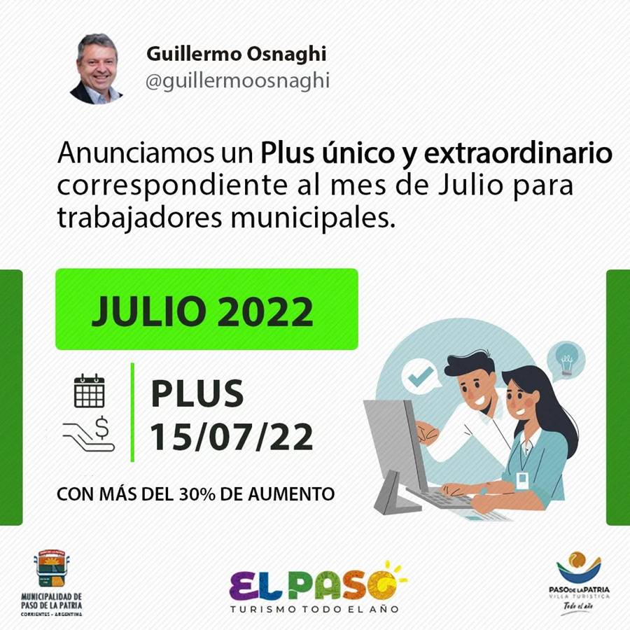 Plus Extraordinario para municipales en Paso de la Patria julio 2022