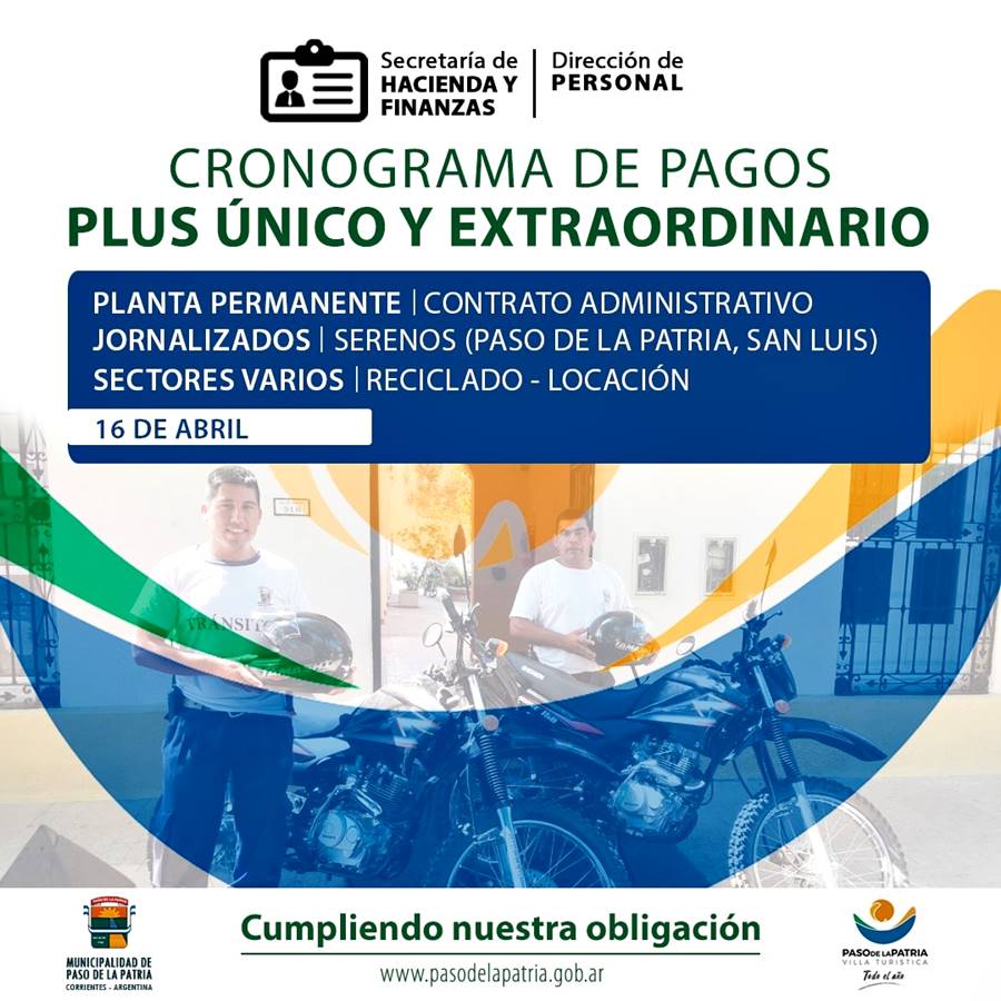La Municipalidad de Paso de la Patria anuncia el pago de un nuevo Plus Extraordinario para trabajadores municipales.