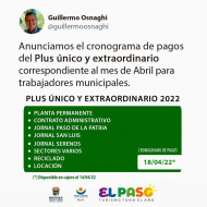 Osnaghi Instruyó a la secretaría de Hacienda y Finanzas y a la dirección de Personal para hacerlo efectivo. El mismo se pagará el 18 de abril de 2022.