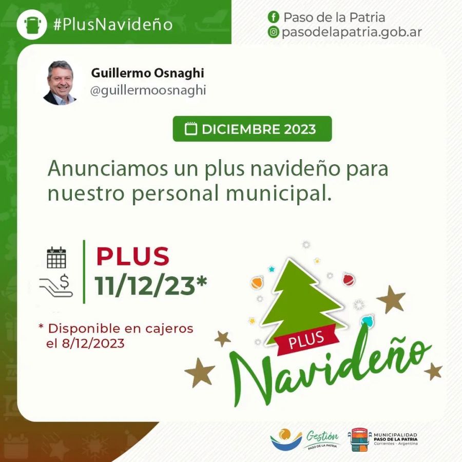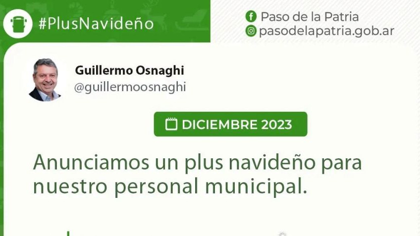 El Arq. Guillermo Osnaghi, intendente de Paso de la Patria, ha tomado la decisión de otorgar una bonificación excepcional al personal municipal en proximidad de celebración de la Navidad.