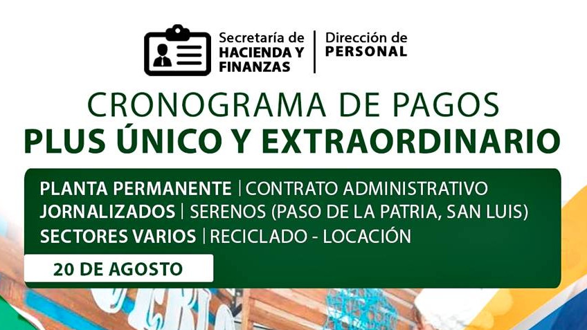 Se trata de la suma de un plus extraordinario de $3.000 para el mes de agosto, con el plus habitual que había aumentado de $1.000 a $2.000 en el mes de julio. Así, el total a percibir este mes será $5.000, el día 20.