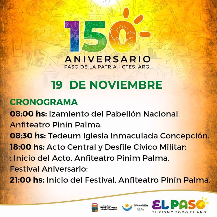 18:00 hs: Acto central y desfile Cívico Militar. Anfiteatro Pinín Palma.