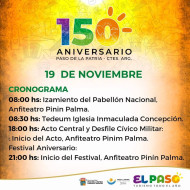 08:00 hs: Izamiento del Pabellón Nacional, anfiteatro Pinín Palma.