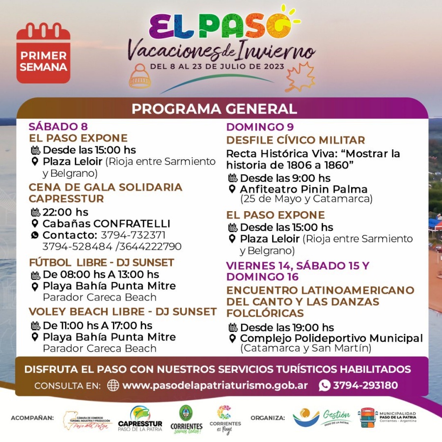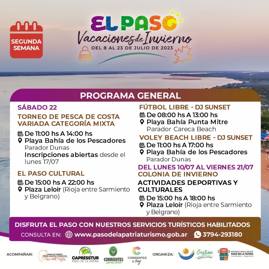 Interesante programa de actividades para las vacaciones de invierno en Paso de la Patria. Esta es la información detallada sobre cada una de las actividades programadas: