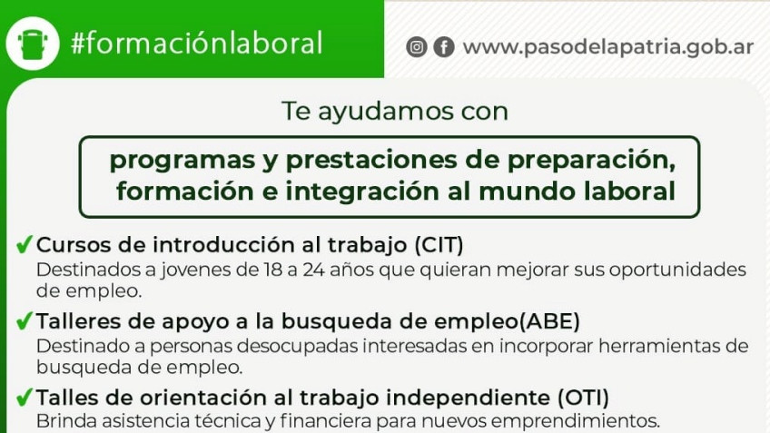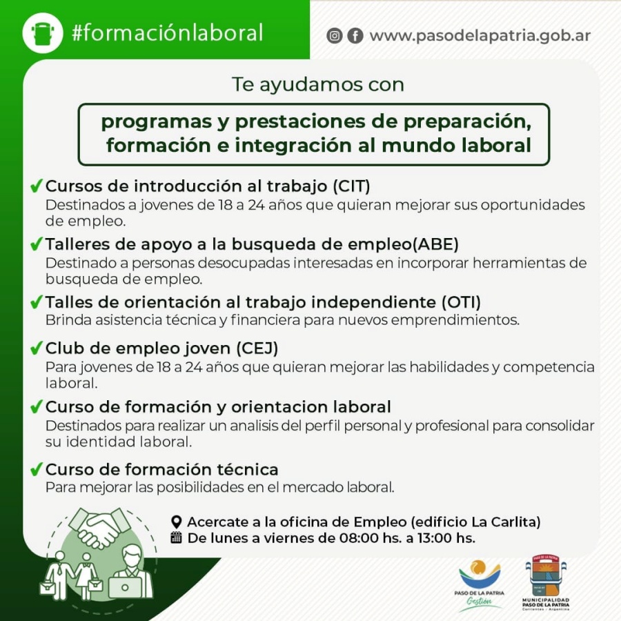 La Municipalidad de Paso de la Patria lleva adelante programas de formación e integración laboral desde la Oficina de Empleo municipal.