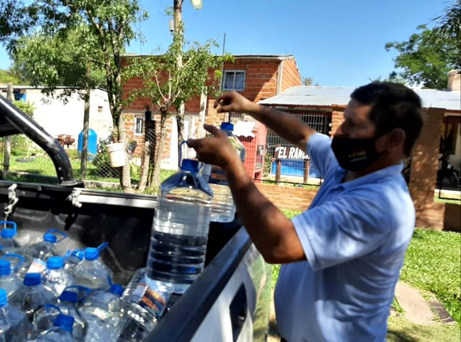Este jueves 31 de diciembre por la mañana, mientras personal de Obras Públicas desarrolla tareas de recuperación total de la provisión de agua en el barrio Rincón, el Intendente Guillermo Osnaghi coordinó la distribución de bidones de agua mineral, repelentes y alcohol a familias paseñas de las chacras 21, 22, 53 y 55.
