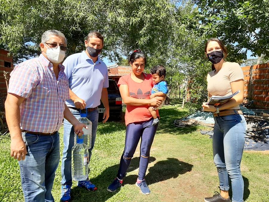 El intendente Guillermo Osnaghi, acompañado de concejales y algunos funcionarios municipales llevaron agua a vecinos del barrio Rincón.