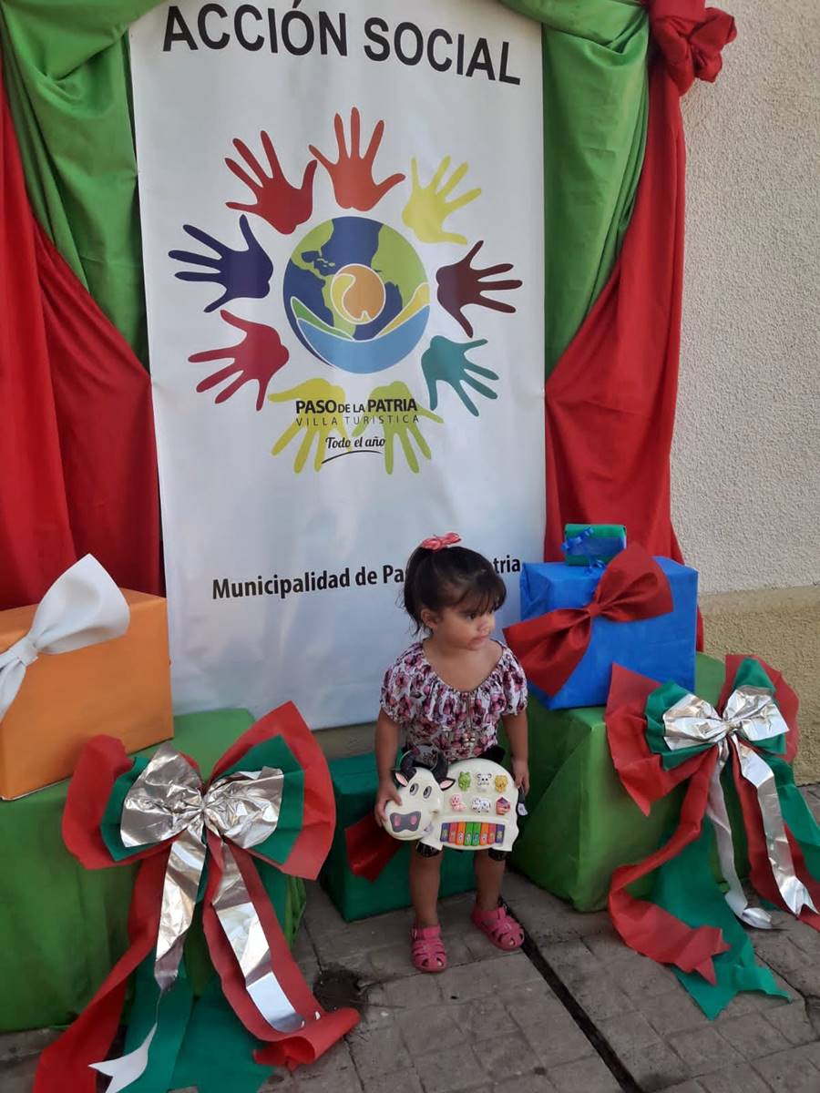 Por iniciativa de la dirección de Acción Social, los niños de Paso de la Patria que pasan por el edificio municipal -en horas de la mañana- pueden llevarse su regalo de Navidad.