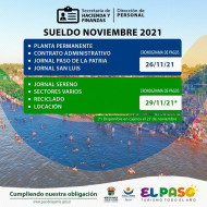 Siguiendo instrucciones del Intendente Guillermo Osnaghi, la Secretaría de Hacienda y Finanzas, en forma conjunta con la Dirección de Personal, informan el cronograma de pagos a los trabajadores municipales, correspondiente al mes de noviembre de 2021.