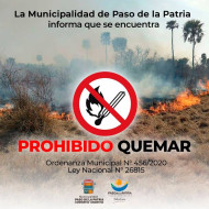 La Municipalidad de Paso de la Patria recuerda que se encuentra prohibida la quema de basura u otros elementos, conforme a las normas vigentes, Ordenanza 456/2020.