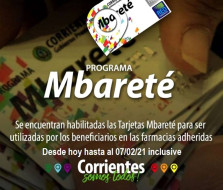 El Gobierno provincial, a través del Ministerio de Salud Pública, a cargo de Ricardo Cardozo, comunica que las tarjetas Mbareté y Mamá Mbareté se encuentran habilitadas desde el día de la fecha (15 de enero) hasta el 7 de febrero inclusive, para ser utilizadas por los beneficiarios de las mismas.