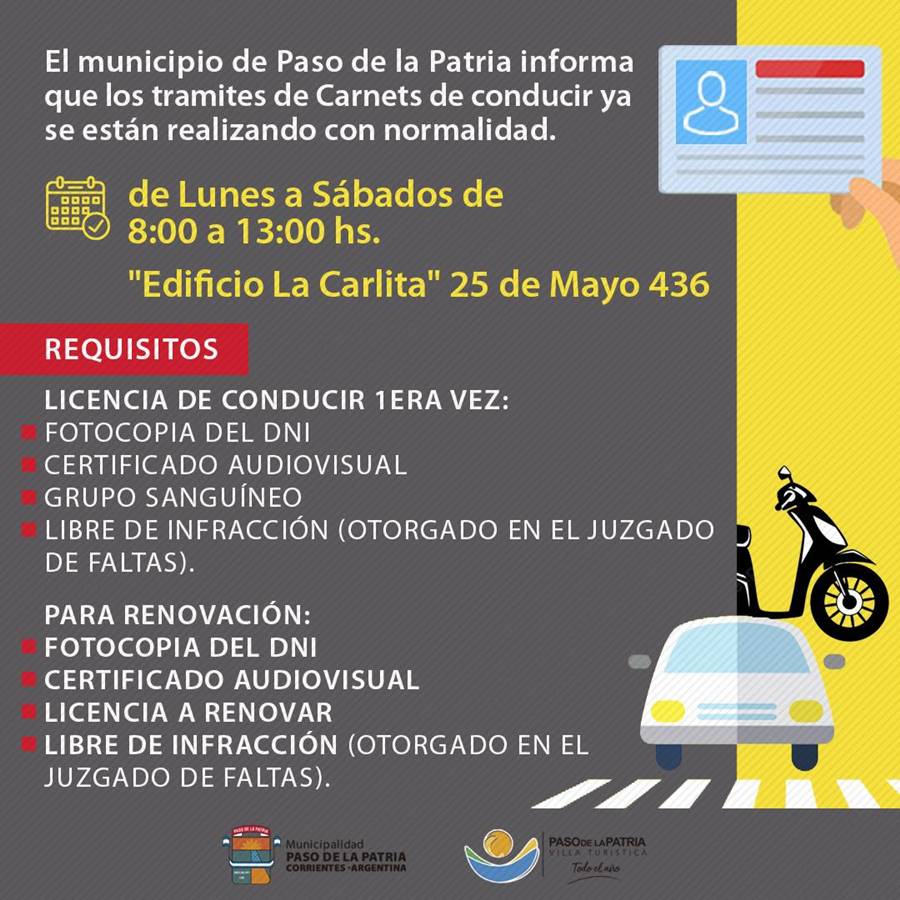 El municipio de Paso de la Patria te informa que ya se están realizando con normalidad los trámites para obtener el carnet de conducir.