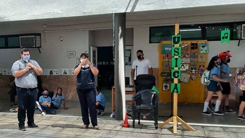 El jefe del departamento de Cultura de la Municipalidad de Paso de la Patria, profesor Ramiro García, participó de la conmemoración de la Semana de las Artes en la Escuela Primaria N° 975 "Baltazar María Gutiérrez", invitado por el equipo docente de la directora de la institución, Any Rojas.