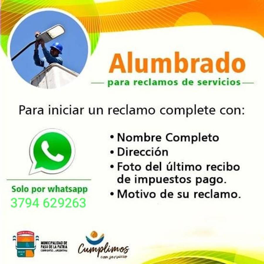 Gestión de reclamos para servicio de alumbrado público en Paso de la Patria.