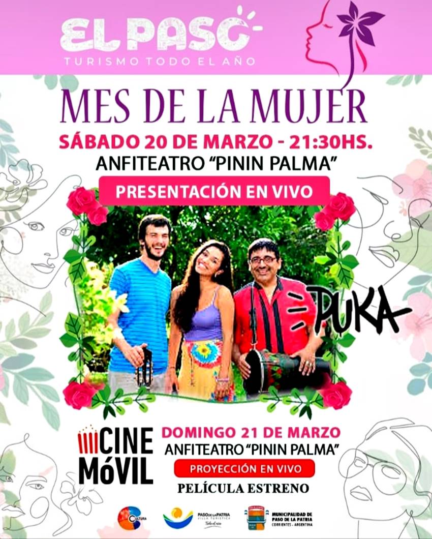 “Puka” se presentará en vivo a las 21:30 en el anfiteatro Pinín Palma, en un espectáculo programado dentro del marco del Mes de la Mujer que lleva adelante la municipalidad de Paso de la Patria a través del Departamento de Cultura que dependen de la Dirección de Turismo, Cultura y Deportes.