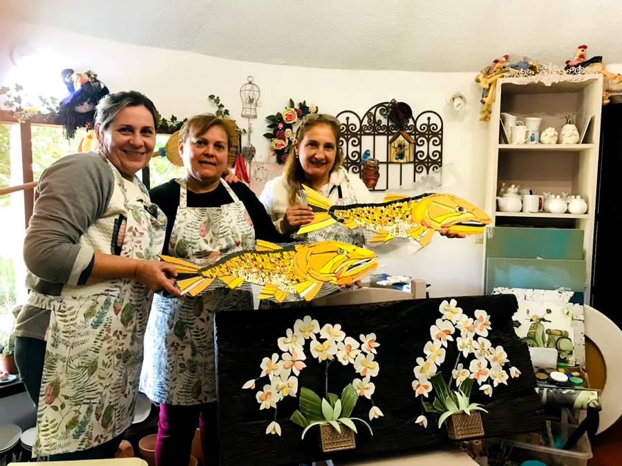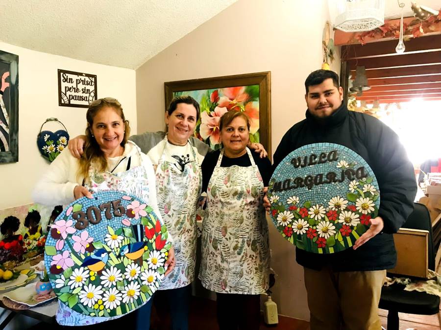 Dana, Rosa y Griselda son vecinas que aportan sus conocimientos, iniciativa y talento para embellecer espacios públicos de Paso de la Patria con trabajos hechos en cerámica y mosaiquismo.