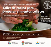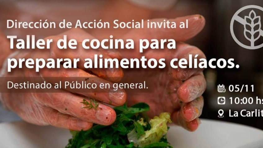 La dirección de Acción Social de la Municipalidad de Paso de la Patria, en forma conjunta con el Ministerio de Desarrollo Social, invitan a una charla sobre preparación de alimentos para personas celíacas, que se desarrollará de manera abierta y gratuita el día 5 de noviembre, de 10 a 12 horas, en el patio de La Carlita.