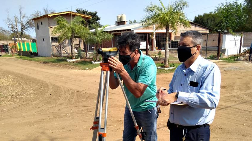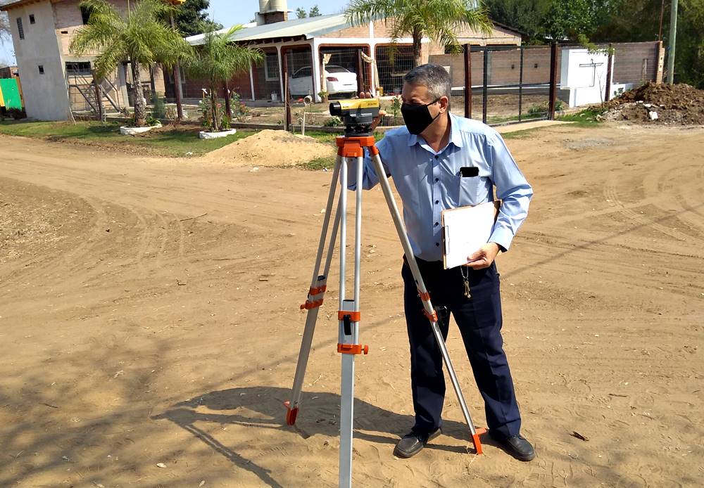 Con supervisión del Intendente Guillermo Osnaghi, avanzan las mediciones de nivelación en calles del Barrio Señorans.