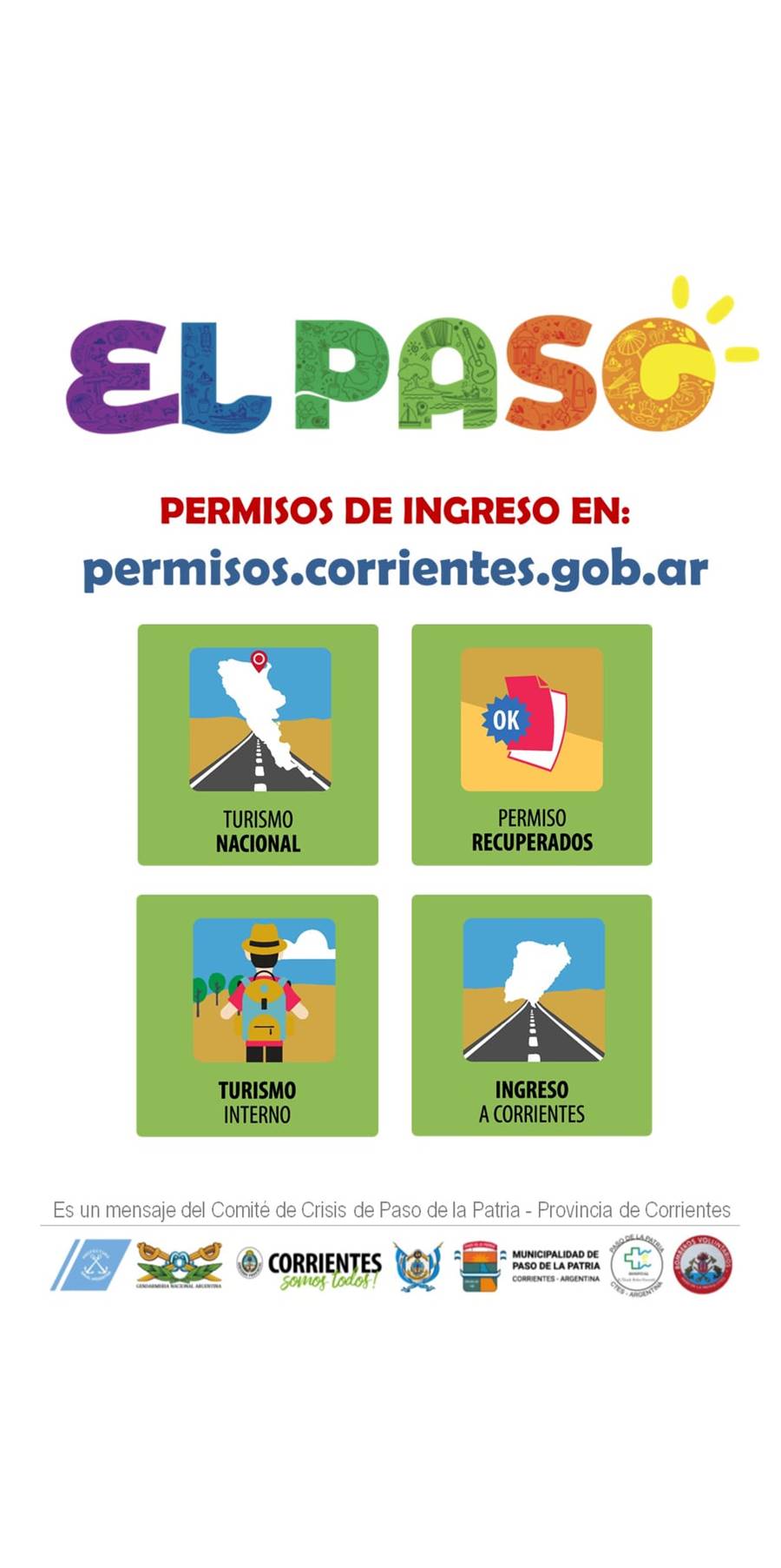 - Paso obtener permisos de ingreso a Paso de la Patria, tales como Turismo Nacional, Permiso Recuperados, Turismo Interno e Ingreso a Corrientes, deben solicitarse en la web oficial de la provincia de Corrientes permisos.corrientes.gob.ar