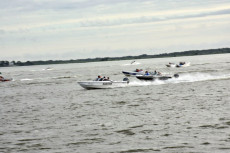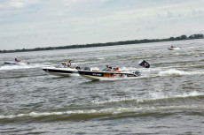 Desde Punta Mitre, toda la concurrencia pudo apreciar la largada de lanchas en busca del dorado.