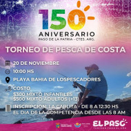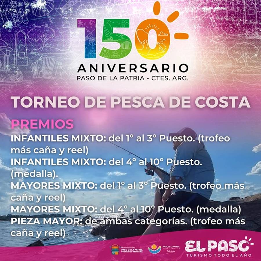 En el marco de las celebraciones por el 150° Aniversario de la Fundación definitiva de Paso de la Patria, la Municipalidad organiza un Torneo de Pesca de Costa.