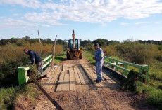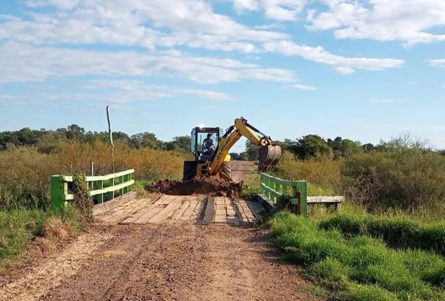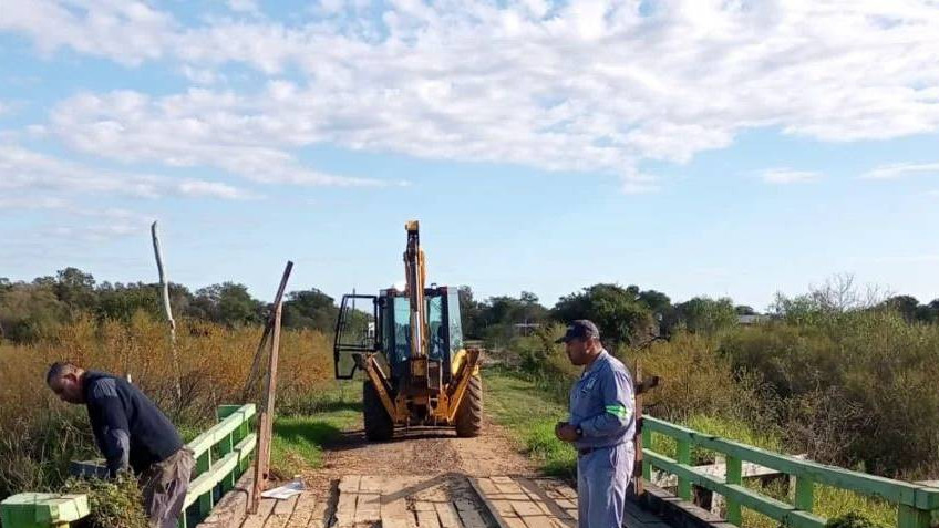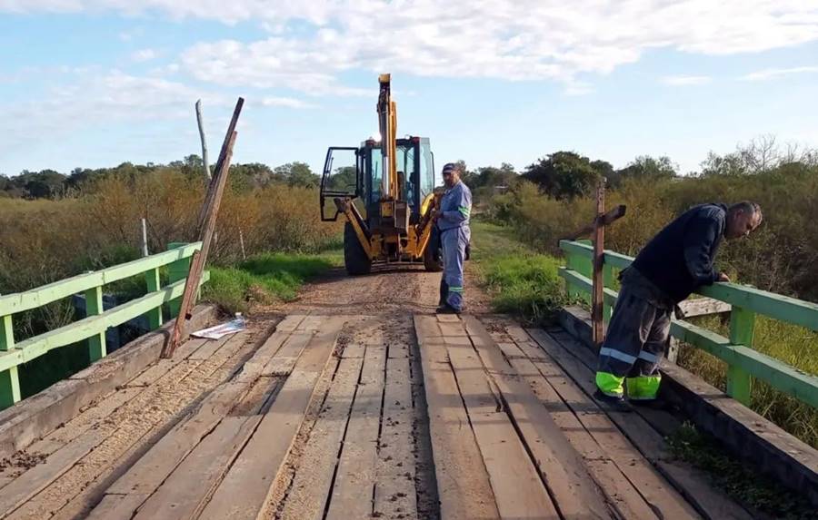 Los trabajos de mantenimiento en un puente sobre el arroyo Huajó, en zona oeste de Paso de la Patria están en desarrollo hasta lograr las condiciones de transitabilidad.