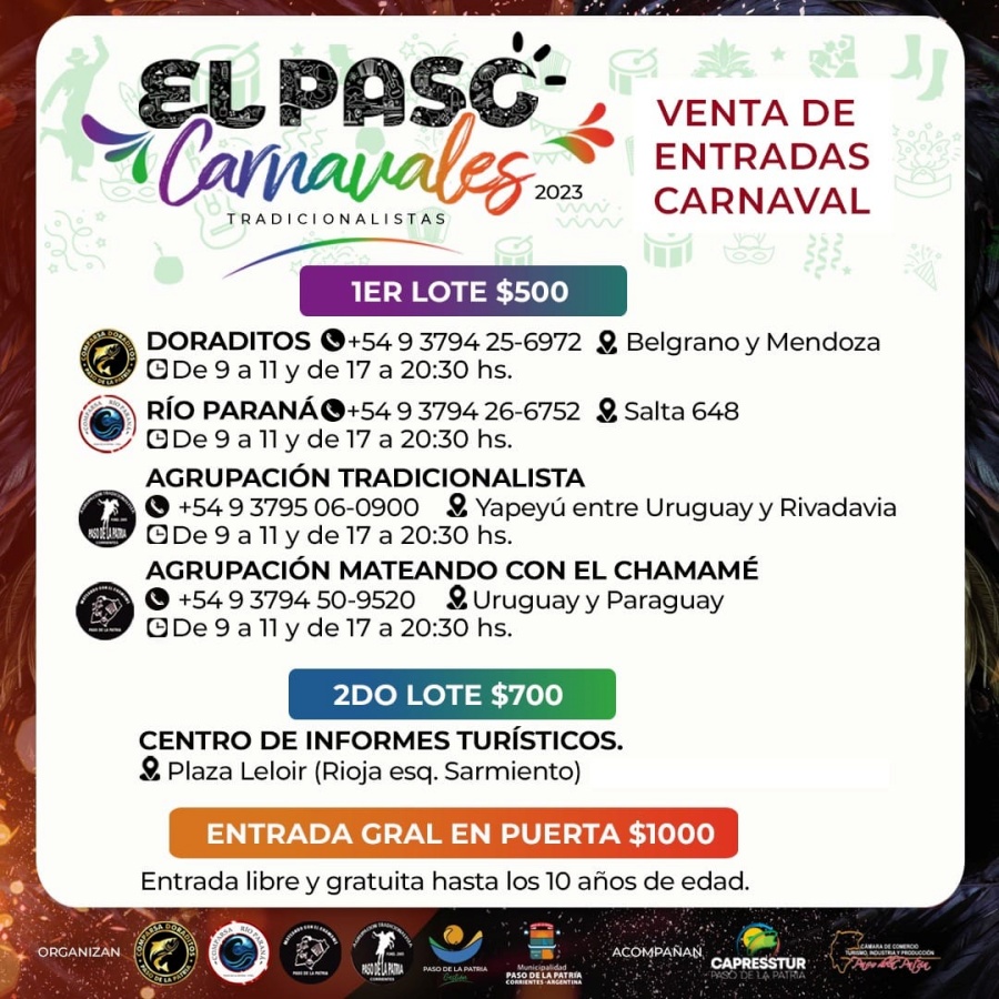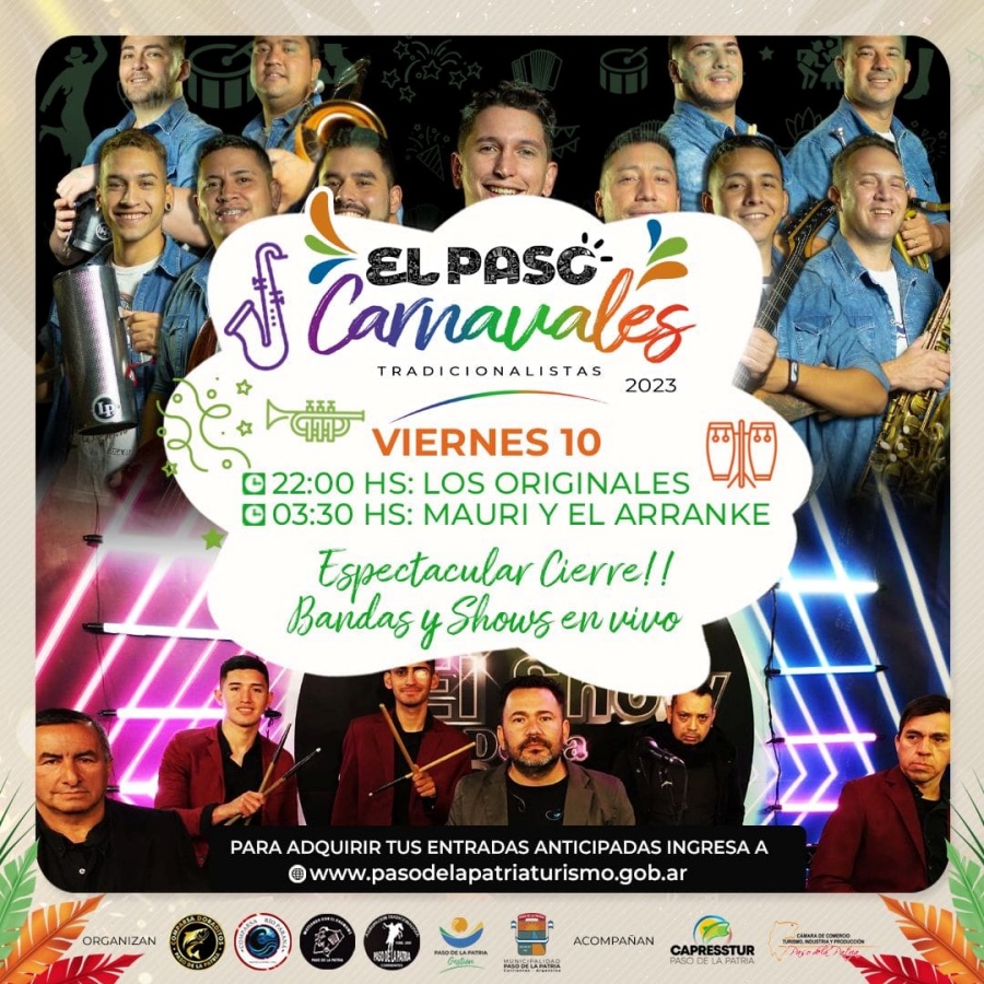 Este viernes 10 de febrero desde las 22 horas, se llevará a cabo la quinta y última noche corso puntuable en el corsódromo municipal de Paso de la Patria, por calle Mariano Moreno entre Salta y Córdoba.