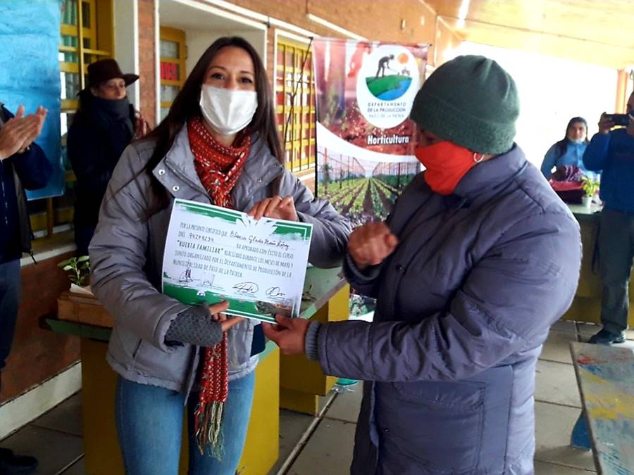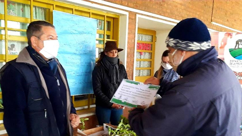 Tras la necesaria adaptación a los tiempos de pandemia, este miércoles concluyó un curso de huerta y así, quienes cumplieron el ciclo, recibieron sus certificados. En la oportunidad, se agradeció al profesor de la EFA, Fabián González, quien prestó colaboración en algunas clases.