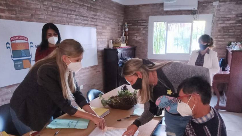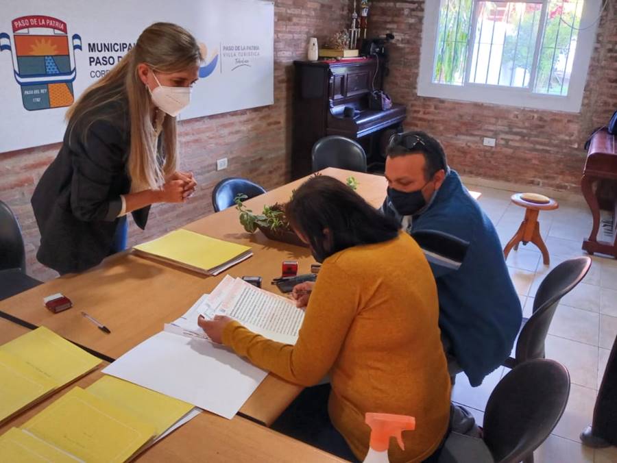 Este jueves 09/09/2021 por la tarde se realizó la firma de las primeras escrituras para que familias de Paso de la Patria obtengan los títulos de propiedad de sus inmuebles.