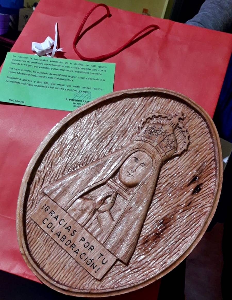 "En nombre de la comunidad parroquial de la Basílica de Itatí, quiero expresarles mi profundo agradecimiento por su colaboración con la Casa de la Virgen, por escuchar y ocuparse de las necesidades que tiene.