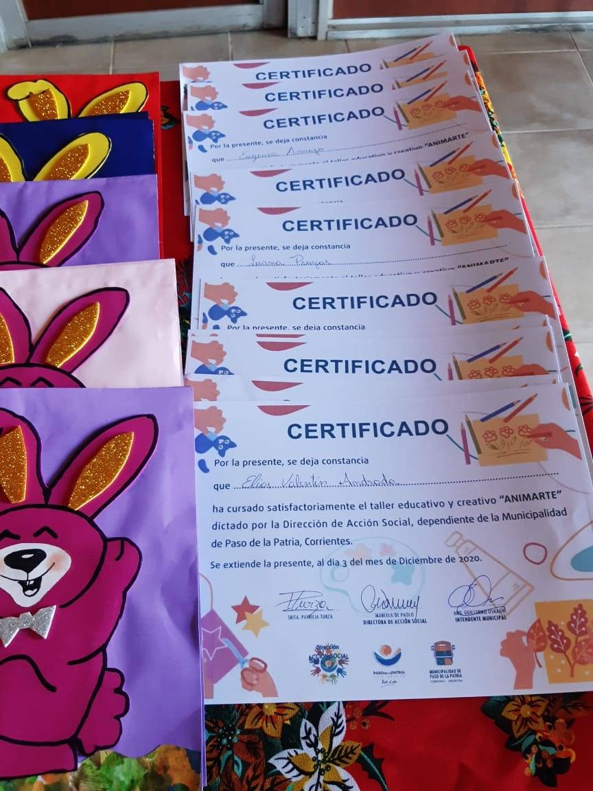 Organizado por la Dirección Acción Social a cargo de Marcela Depaolo, se realizó el acto de fin de ciclo del espacio de “Apoyo escolar” y del taller educativo y creativo “Animarte”, con entrega de certificados, carpetas y obsequios a los niños que asistieron regularmente a la propuesta educativa de la Municipalidad de Paso de la Patria.